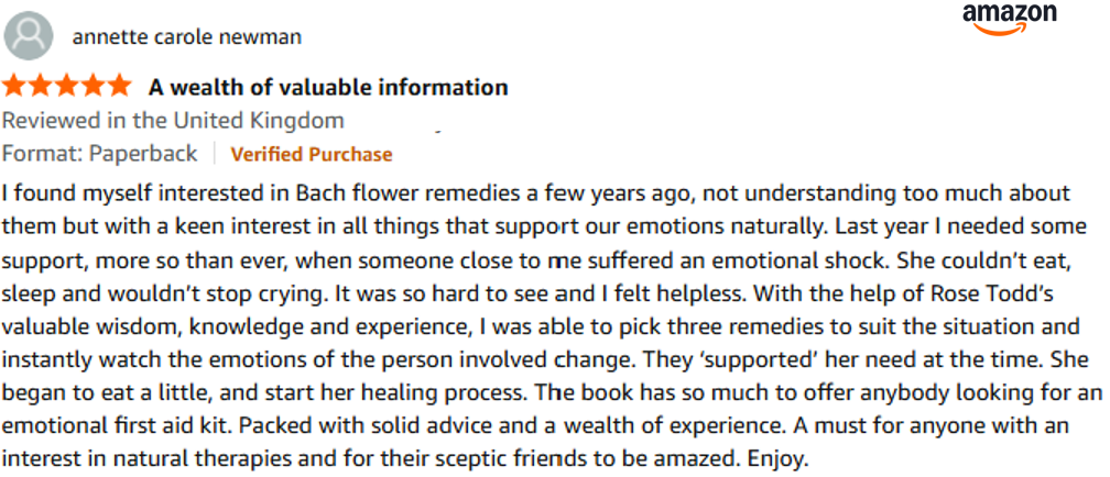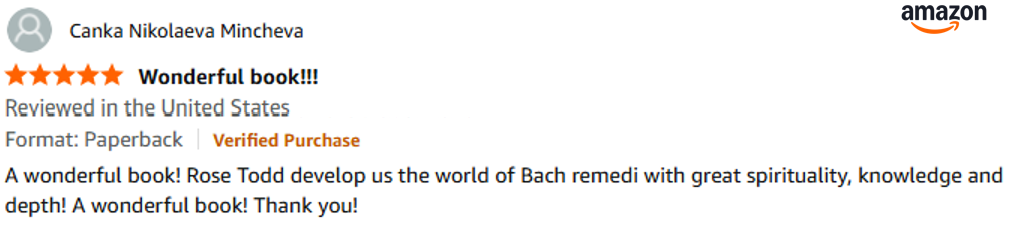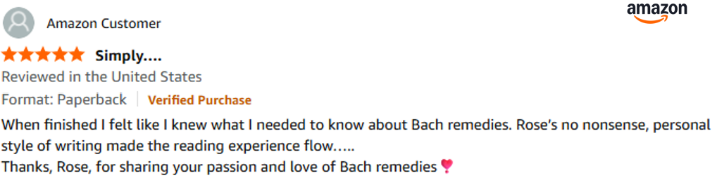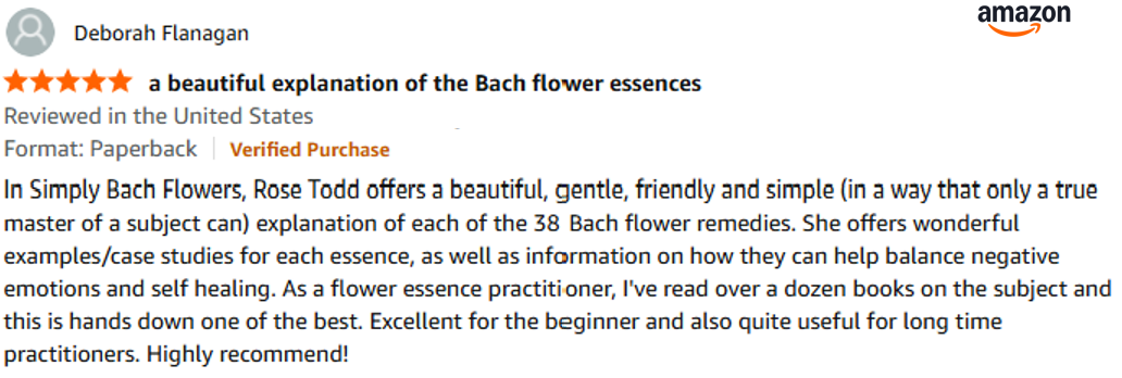 "When I saw the book, I didn't hesitate. I'm always seeking a deeper understanding of how to use the Bach Flowers and Simply Bach Flowers has given me this. Thank you so much Rose!"